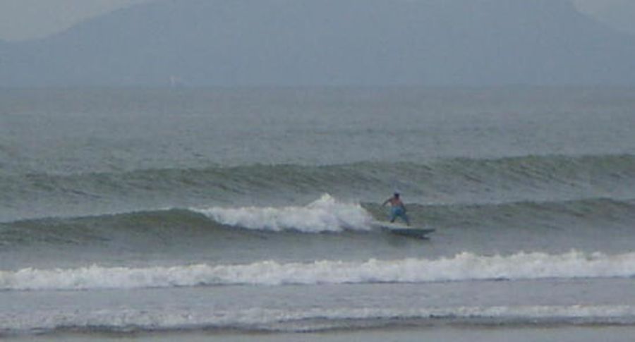 Long beach stretches from the gap of native coastal shrubs (between Navegantes and Gravata) to the northern end (about 6kms). The norhtern end features and island which at its right side has a good long peeling lefthander which can produce very long rides when conditions are good. The small bay between the island and the cliffs is offshore to NE winds but the water is polluted. Be ready for the odd turdie fellow swimming towards you!