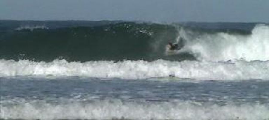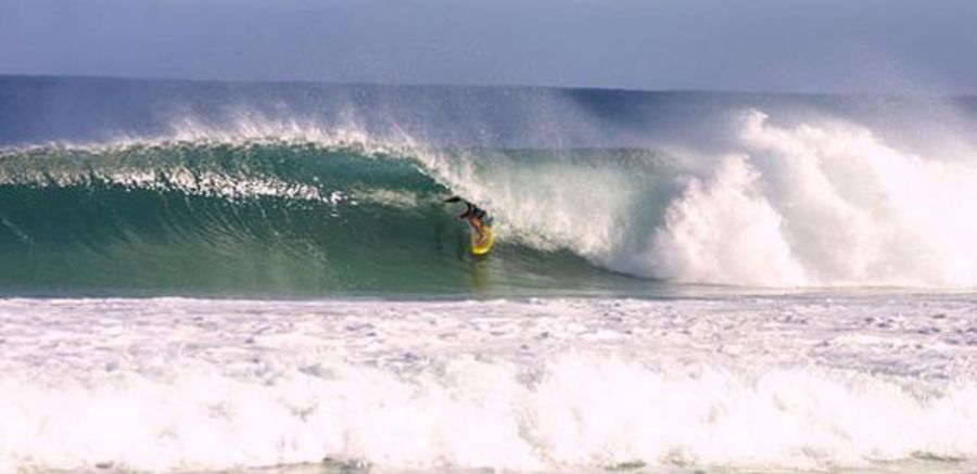 will find a carpark and to the left is another sand track that leads along some hard sand then to another carpark. when you get to that car park you will see a 4x4 track. follow that and you will come down to the beach and walk about 800 meteres and you will see the nice shaped waves.