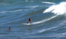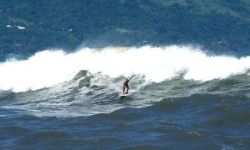 Depending on the direction of the swell, you can paddle in a chanel near the rocks, very safe and easy. This spot is requested when the swell is too big in other beaches like Maresias and Paúba, the best waves in this part of coast. You can catch a good one and go all the way to the beach(sand) if you want. Very long in some days. In those big swells there is a rocky bottom that breakes in the right corner offering a big drop wave, a little bit fat, but very long, some waves make good tubes in the inside.