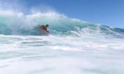 turn right off pacific highway down teagardens turn off, travell along main road untill you reach Hawks Nest (other side of bridge). Turn right at 'T' intersection, turn left at round about and follow road straight to the beach.