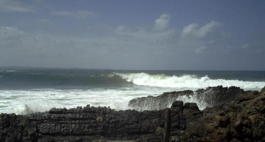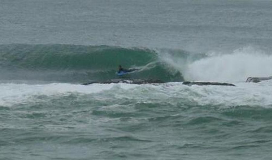 Second Head. It holds swells up to about 10ft+. Its a short walk down the headland to reach the water and paddle out here or from pebbly.