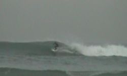 Drive into Hendaye on the main street running next to the wall and the whole bay has peaks along its length. Also a bigger right-hander at the north end of the bay, breaking off the big rocks some way out. Needs to be head-high swell for SW France before this sheltered bay gets working. In storm surf it can be the only place in the area for mere mortals. Not an epic wave but definitely an option.