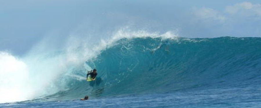 Long, heavy and barreling. Usually about 80-100m long, but on bigger days up to about 150m or so into the little bay, barreling all the way along.