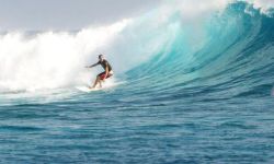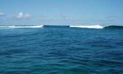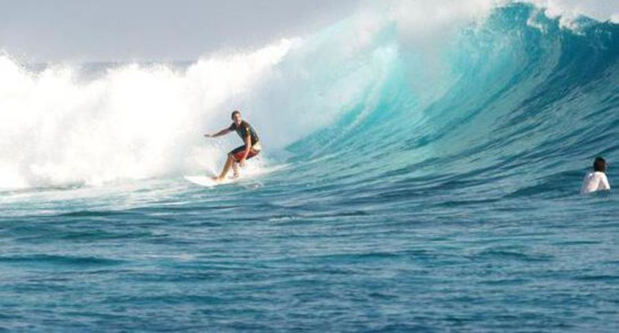 The wave has two sections which usually link up, the outside and... the inside. The beach (and the entire atoll) are private (govt?) property. When the swell gets up and its of a certain direction there is a lot of current running off the point.