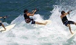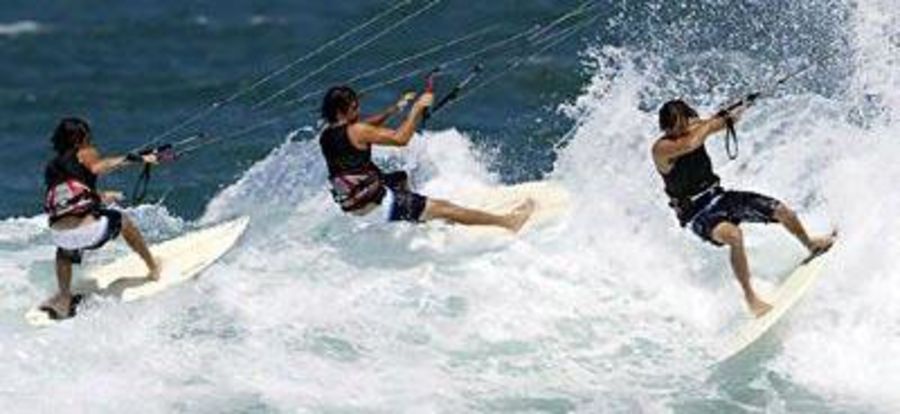 It's the best windsurfing spot in brasil. so when it gets windy, surfers out - windsurfers in.