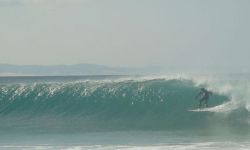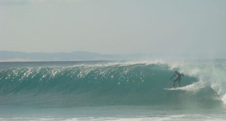 In a solid 8+ swell, with the right conditions, you are more likely to ride all the way down the point to or even past Impossibles, even past the Point, if you pick up one of the bigger "sidewinders" that wrap around the point more to the left. The meat of the wave is further down and somehow this prevents it closing out when it hits Impossibles. However, it also commits you to pulling into one of the most awesome barrels of your life. As Impossibles approaches, locals or seasoned visitors will raise both arms in the air and point down the point. It's a signal to whoever is interested that the person is going for broke all the way down. Then it's time to build up speed by drawing speed lines near the top of the feathering wall. As you begin to reach critical mass, short of taking off into the air, you drop into the bowl and hang in for an eternity. Deep in the pit, the sunlight recedes until it becomes what seems a speck in front of you, like the exit to a round blue cave where daylight is a distant glare. Oh no, this is it, too deep! But hey, suddenly the entrance draws back towards you. It hovers once or twice, flirting with you, before peeling back over your head. You're in the sunlight. It's good to be alive. Some dudes at Tubes are staring. You don't care. You're shaking with sheer ecstasy. You kick out, even though you could have carried on. What's the point in surfing through the Point? You've just had the wave of your life. Time to get out, and walk all the way back up to Supers along the beach, about a 300-metre walk.