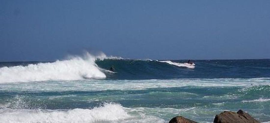 Wave build from the break at the point. Has a flatish section then walls up. When cracking, it walls up from the start. If the tide is high it fattens out, too low - it closes out. So its a hard wave to guess when its working. Best conditions - 4m WSW, mid-tide.