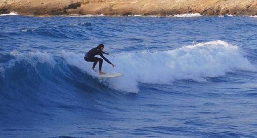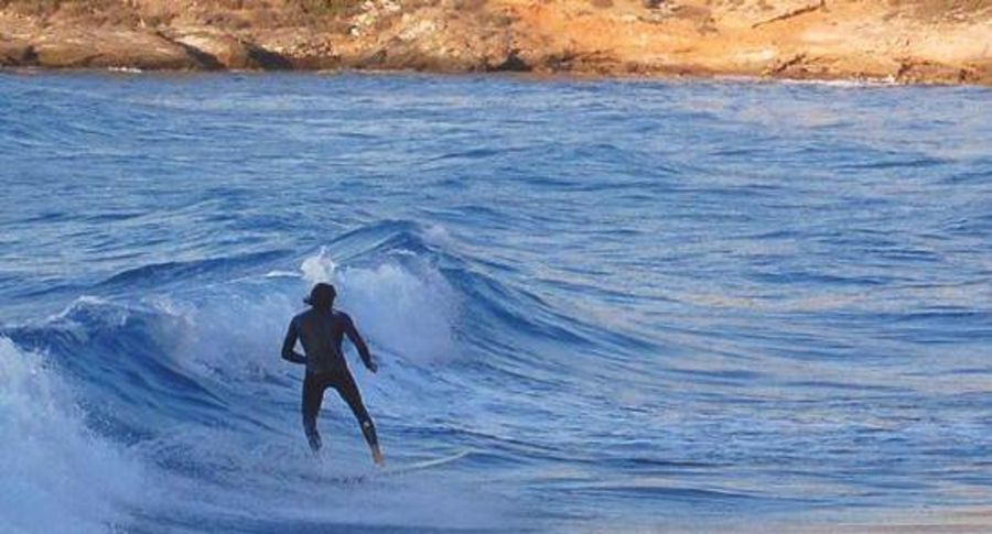 Park your car almost on the beach. You will see the waves breaking mainly on the left side (when you look towards the sea) and some in the middle of the bay when the "swell"is a bit bigger.. You won't have to paddle much, it's a small spot..