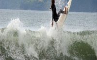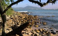 Go trough the BR 101 then you will find the beach in your left side if you are bound for Florianopolis. It's beside Meia Praia.