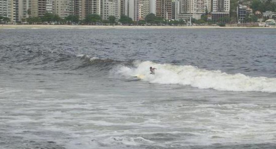 Cross the Guanabara Bay by Rio-Niteroi bridge. Once at Niteroi go to Icaraí Beach. Can´t miss. Only work´s when swell is above 6-8 feet cause it´s on a protected coast.