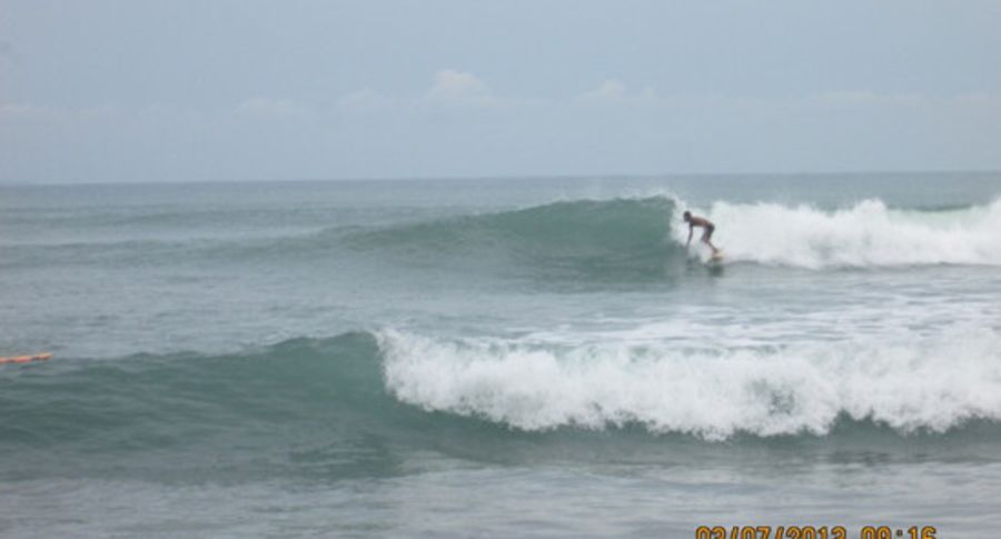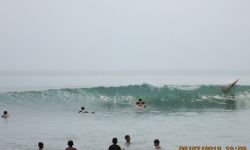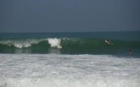 Park the car right at the beach for a small fee (IDR 25,000). A 200 metre stretch of sandy beach with a rock wall on the southern end and reef on the northern end. Breaks best on a chart swell of 2.5 SW and higher - the more West the better. Sand banks shift with the seasonal tidal flows but can produce lefts of the rock wall, rights and lefts from a centre bank, or rights off a bank on the northern end of the beach. very suseptable to tides - can work really well off banks for 1 hour and then get too full on a highish tide or close out on low tide with a big swell. Tends to close out on a decent swell. Best on 2 to 3 m of chart swell on the right tide - fun waves. Can get quite heavy rips.