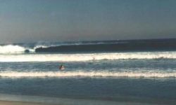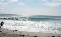 I will take you from the moment I park my lock my car and start my short walk. I am usually lucky to get a spot on 40th street when I dawn patrol. It is a short walk to the boardwalk then down to the sand. You look out in the straight ahead only to see the groms and the other surfers in the water having fun. Once you take a glance north you see a wave breaking farther out and rolling almost to the shore, there is only a handful of surfers sharing this wave. You take a 12 minute walk or 5 minute jog, drop the towel strap on the leash, walk to the north end of the rocks and paddle out. When you are sitting in the water at this spot, there is what seems to be a private beach club house on the beach to the south. Right in front and to the north, is pretty much the Highland beach area, very nice houses, private beaches. To the south looks like a small shallow bay area which is why Jap Rock sticks out a little farther than the beach area to the south. Have Fun.
