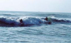 Careful if you ride the dirty river out. There's shallow rocks that might break your skegs. It's an easy paddle out, but is it worth the risk? On a bodyboard, sure. Also, if you bring kids/nonswimmers, keep them away, the river current where it hits the ocean is strong and will shoot you right out into deep water.