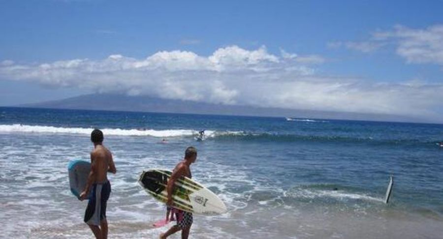 Drive along the Hotel district on Ka'anapali. Most popular spot is just to the right of the Marriott. In front of the Ka'anapali Alii hotel. Watch out for surf class, ans beginners.
