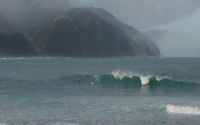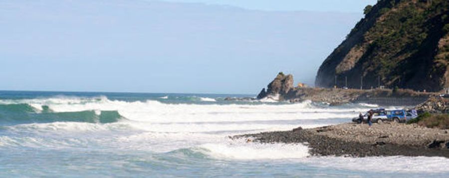 Kahutara is a few kilometres south of Kaikoura township. Its located straight out in front of the Kahutara river and bridge. There are two main places to park up. First is just south of the bridge. The second is about 200 meters past the bridge, take a right turn onto a bumpy muddy track which will take you up into a parking area straight out from the break.