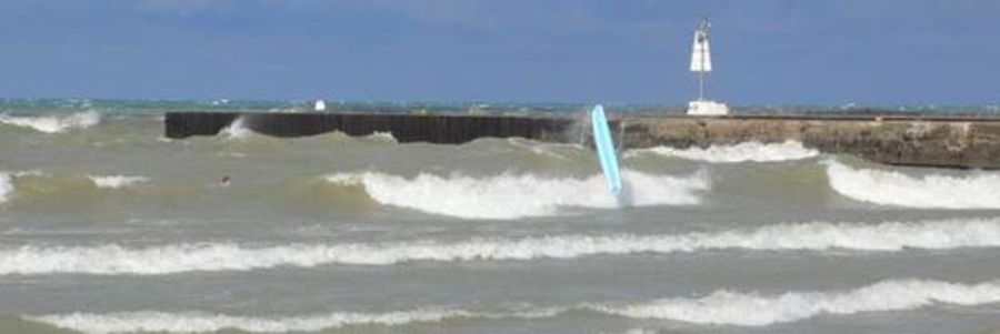 Park at the marina, right next to the beach. Walk to the end of the pier and jump in! There is a nice peak to the left of the pier and some more peaks furthur left. Mainly right handers but there are lefts there as well.