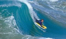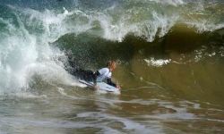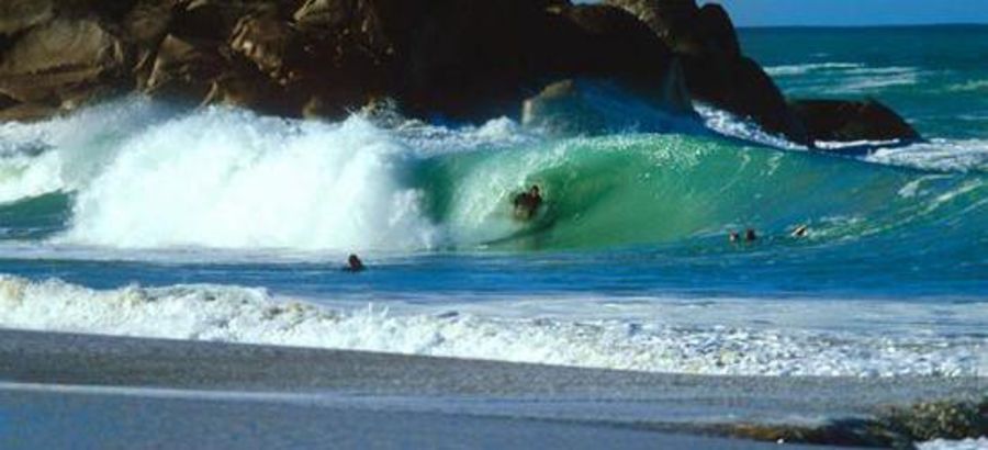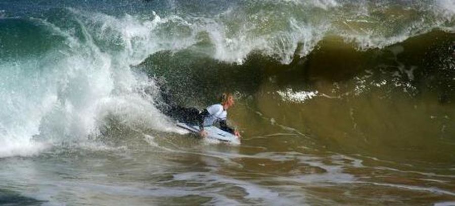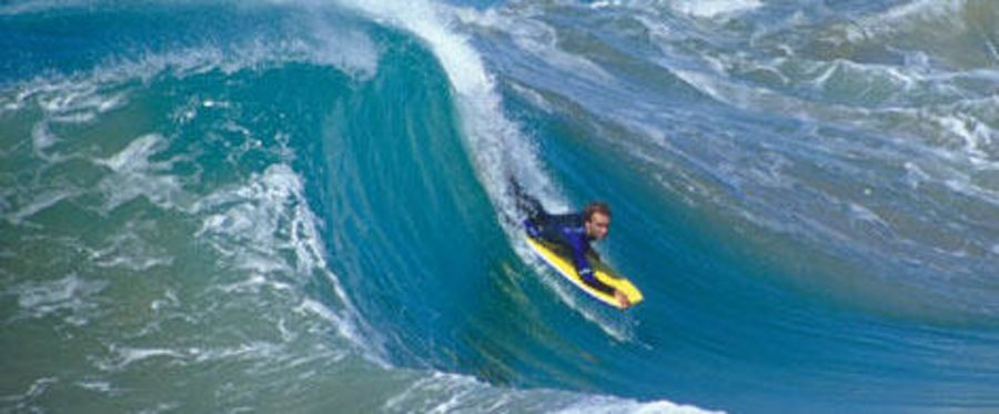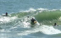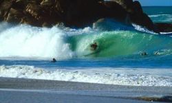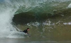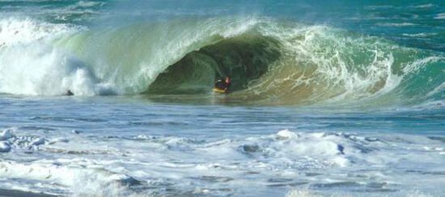 Heavy shorebreak + a wedge = Knights. Prefered by bodyboarders because their boards are harder to break, the rides are generally short and intense, and some of the sections look like landslides. Generally any surfers who attend knights are experienced, are there becuase there's nowhere else worth being, or have brains like their duck-taped single fins and are just as easily seen in any other location intimitating youngsters and punching people in the face. The bodyboarders who frequent it can be divided into two categories: those who are yelling 'GO', and those (Generally young teens) who are being sucked over the falls in terror after being called into closeout sets.
