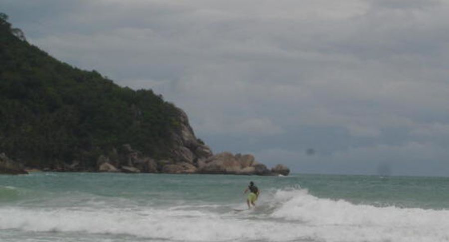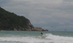 It's a good place for beginers. You can rent boards at the beach for 10 USD for a hole day. They have both longboards and funboards.