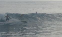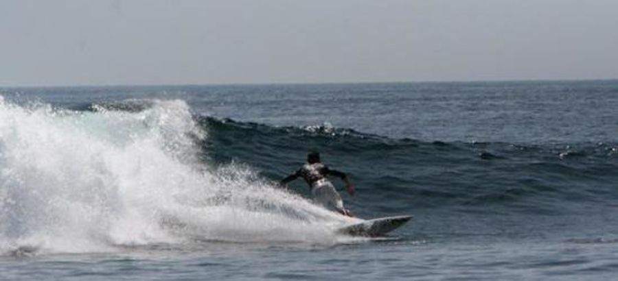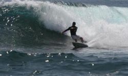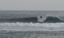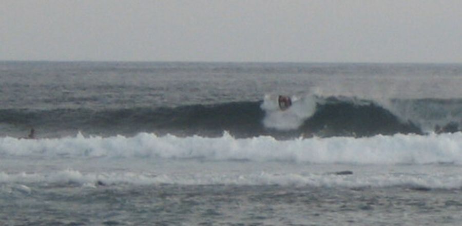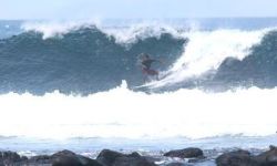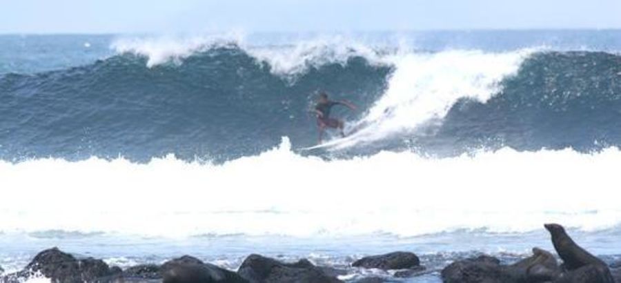 This spot can start getting hairy at about 2 meters or 6 feet. The left is super sketchy when only typical swell is showing. But when a huge swell south swell starts, grab your gun and get barreled. The right is longer with a quick take off but can be very fickle, so judge it wisely. Paddling thru the sand part of the beach is recommended unless you have reef booties then jump off the rocks to the far left of the beach. Helmet and reef booties advisable if the swell is 3 meters/9 feet or so ! Have fun and stay away from the sea lions in the shorebreak, they can pound you harder than the waves.