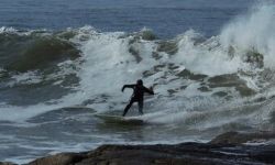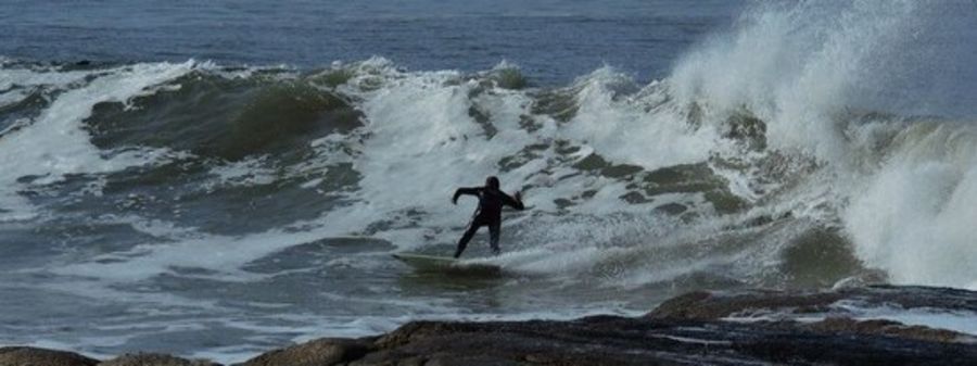 It starts with a drop in front of the rocks, then a very very long wall with some tube sections.