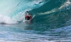 Agressive wave, very shallow over the rocks and urchins. Boat access only and I could tell you there could be some hammerhead sharks out there (but they still prefer fish). More of a bodyboard like wave but could be shortboard ridden. PS: 'Dramin' is a remedy for nuts.