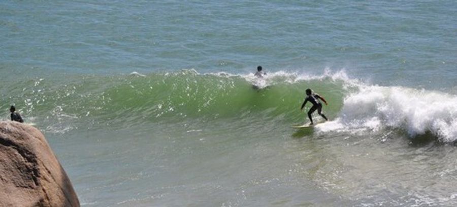 This is a good right, usually with a good wall and just after a large drop hard. In the good days is a long right, on epic is one of the longest waves (in March) of the Brazilian coast when the wave connects to the beach from the tip of the cane on those days the epic wave over 500m in length. To break an epic is nessesário east with a good time, good pressure, size and then have to be aligned, only in big hangover from east. A wave of normal lick-lick begins to work with a sound waves from east line above 1 metrão.