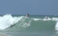 Waiting for the next set can be scary becasue of the shark infested water, but once on the wave it is really fun.