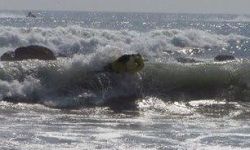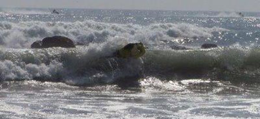 it can be a bit dangerous at low tide for beginners because it breaks infront of many sharp rocks