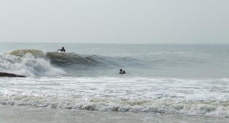 Very close to the phare, in fact as the port grew up it is on a beach behind the big artificial " digue" they built to protect the port from the swell, the easiest access is from the bay by jet ski or boat because from inside the port you need to know the area or going with that knows where to park close to that beach.