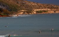 More exposed then Vouliagmeni, however it's further. You may want to check out the beaches close by; may provide better surfing conditions.