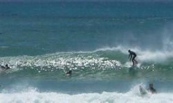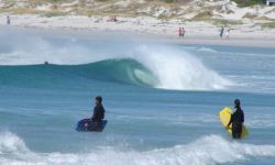 This is one of the few breaks in Cape Town that holds up in a South West wind. There is a permanent sandbar in the middle of the break with peaks breaking left and right. The left is very consistent and breaks into a channel. The right sometimes closes out or fades, but can still give great long rides on the right day, which end over a rocky area. The shore break can get a little serious on big days - you may want to kick out before you get there. Unless the swell is big, don't bother at high tide - it get's too deep and the waves don't break on the sandbar.