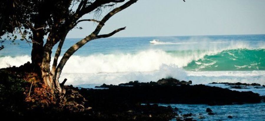 Along the coast road out of Kona past Bayans towards Kahaluu beach park. Park along the road beside the benchs. Walk toward the house on the left of the bay as you look out to sea theres a narrow path which takes you to a little pebble beach you'l know your there when you find flip flops (slippers) that the locals wore down.