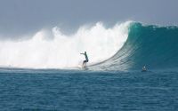 once rarely visited, surf charters started to pack the place and now there is a resort. Many pros visit, very popular as it is the perfect wave for all maneuvers, good barrels, and even good for intermediate surfers. Might see taj out there.
