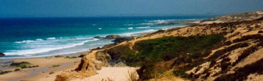 From Vila Nova de Milfontes, follow the road to Sines, and on your left there is a turnoff with a sign indicating the beach