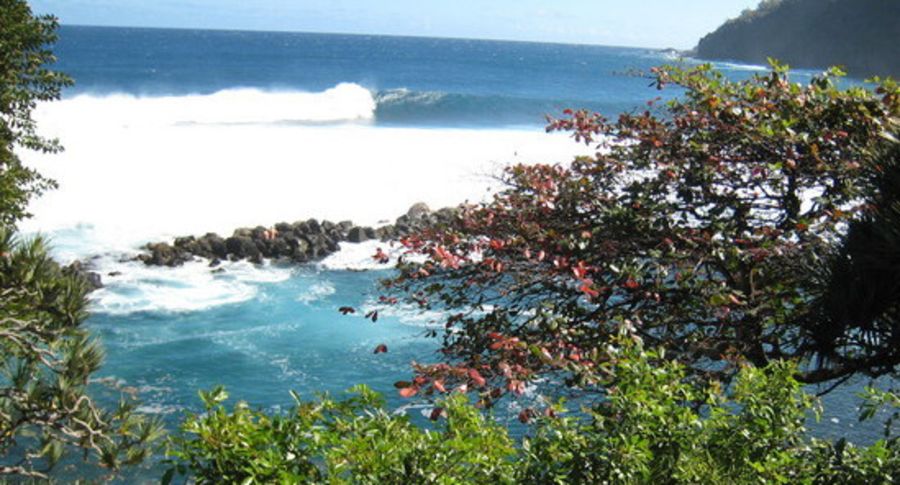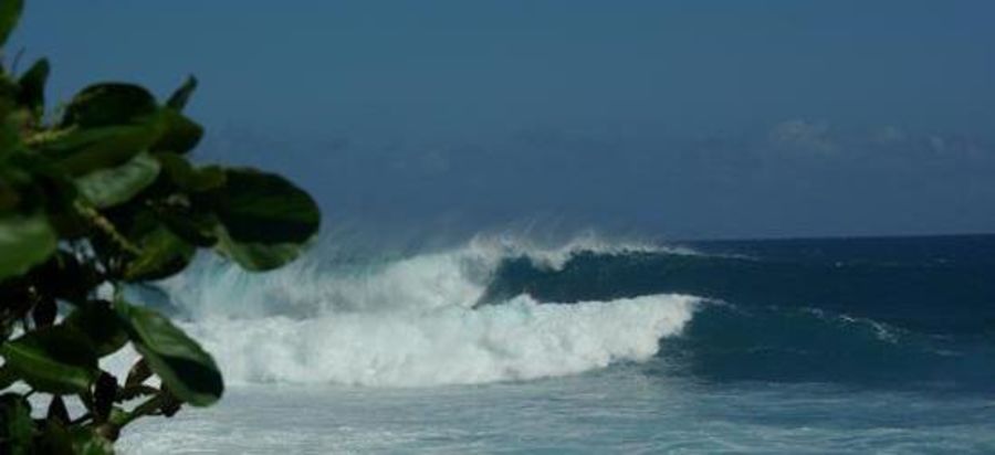 The wave is the creek at "Manapany les Bains" in front of the swimming pool.