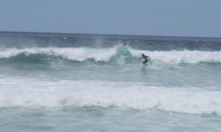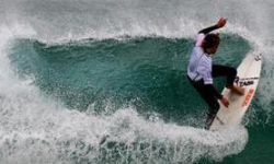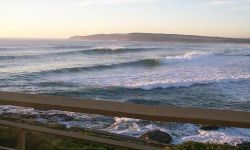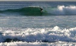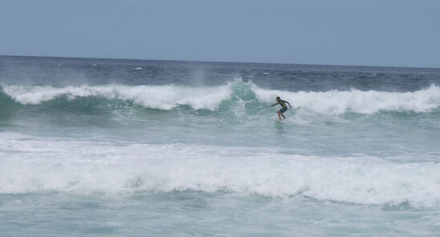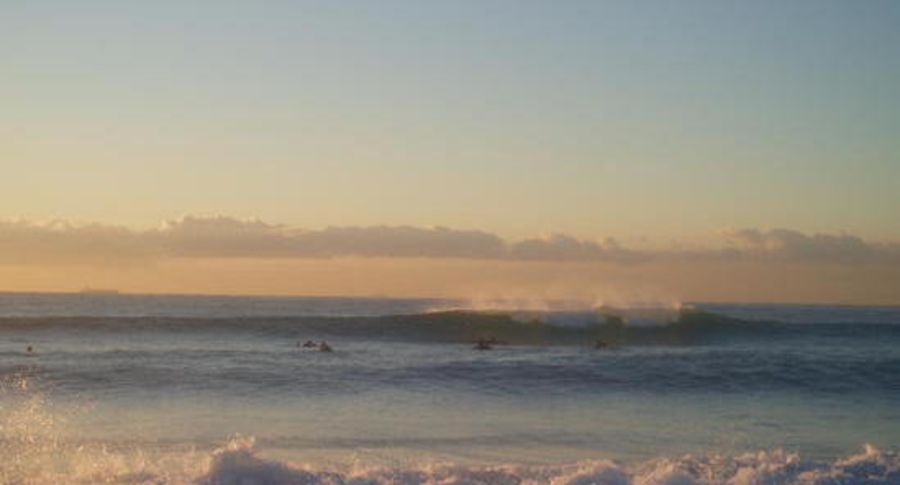 Maroubra Beach is the often overlooked masterpiece of Sydney's surf beaches. Open to the great Pacific Ocean it receives the full strength of its waves, especially when the sets arrive with power, driven by an east or north-easterly swell. The beach itself stretches approximately a kilometre in length between the arms of a wide bay with a picturesque green, rocky, heath and grass-covered peninsula at the south end and a line of splendid, mysterious, rocky cliffs stretching away into the distance at the north end.