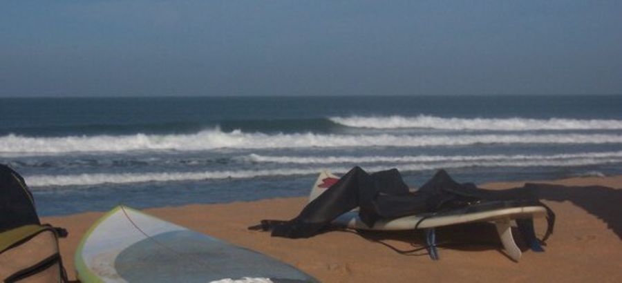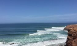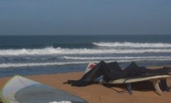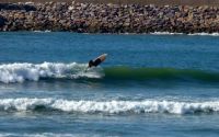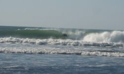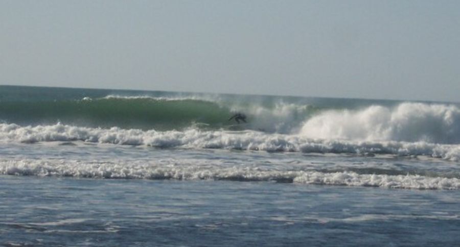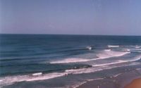 A very nice spot to put the missus in a cafe (right next to the beach) and have an easy surf; bit short on other options nearby though - it's a long drive to the nearest decent point break. Me and some friends joked that this stretch of coast is like "Cornwall-ifornia" - Cornish topography with Californian vegetation. The geology is similar to north cornwall, with steep valleys and heavily faulted rocks; hence no decent reefs or points, but fine for pocket beaches; the waves types available nearby are thus very similar to north cornwall; but less tide, and warmer water... so not bad at all really!