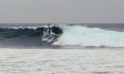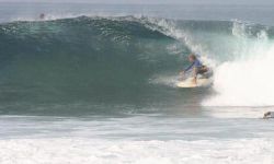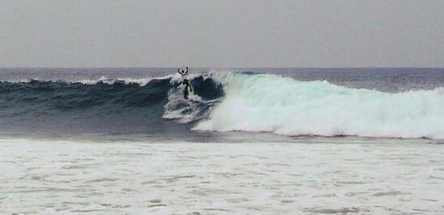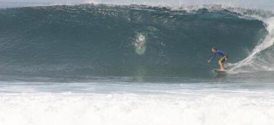 Two distinct peaks, inside (southern) peak is preferred, longer and cleaner rides. On big NW it can all line up. Low tide can offer ledgy barrells on all swells. Higher tide the wave turns into a performance wall.