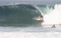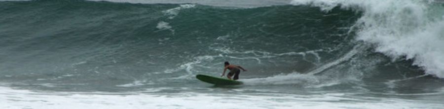 The beachbreak is right in town, the point break (right) is a 10 minute walk nort (at the obvious cliff). You can park in town on the street or there are now 2 large parking lots right off the highway, 1 north and 1 south of town. Wave is fun but powerful and it is really good for beginners (mid tide) and advanced surfers (high tide), you can surf it when the point is sloppy