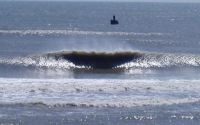 This is a good spot because when the hurricane washed out the sand dune (and the road) it dumped the sand just offshore and when the water from the bay is being pushed out through the inlet by the prevailing wind from the west it makes some nice swells on the shallow sandbar