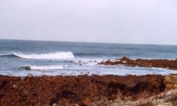 This occasionnal wave is a surprise in this region because it is a hollow tubular wave with no water. A good one ! Only very few locals know this wave and rarely surf it. It is pretty dangerous to surf it because of the rocks and the srong rips (the strongest of Europe 400 m after the spot !). Surf here at your own risk. If the wave is a right and a left, right and left never work at the same time due to the direction of the swell. It needs a BIG swell ans southern winds to start working.