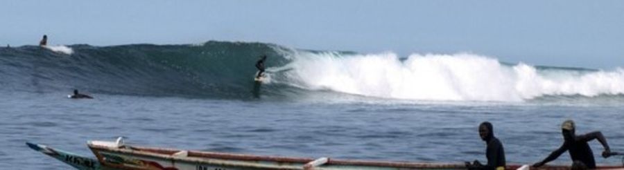 You go to N'gor fishing village, just 15 km from Dakar, then you catch a boat (500CFA more or less round trip) to the N'gor island and you jump off when you are on the reef. To come back you paddle to the shore and catch a boat from the main beach. Paddle to parking if you like it he he he