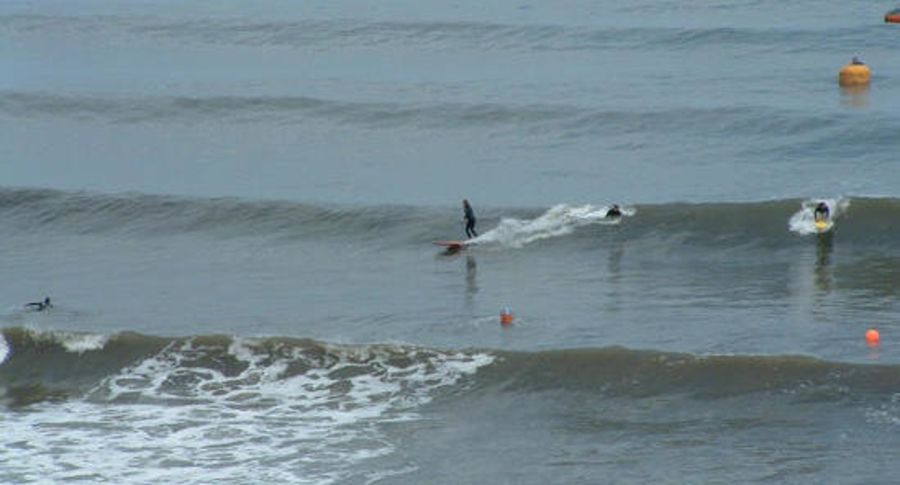 A few peaks spreading across bay, crowds more of a problem than S bay. Only works at 3hrs at each side of high tide cos of the sea wall ( don't get caught at high tide otherwise you have an a) sketchy pounding risky exit or b)a long paddle back along to the ramp. Bigger and more exposed to N'erlies than S bay. Park car on the slope and not the sea front to avoid parking charges out of season. Nice cafe/greasy spoon on the sea front and also a more of a 'sit down meal' sorta place on the slope. A bit more flash than the cafe. Quite a fit bird works there too.