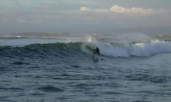 Breaks pretty far out, but close to jetty. Short juicy very crowded right towards jetty, longer mushy left. Long walls and barrels. Holds big swells.