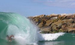This spot picks up the swell. The wall helps form some nice peaks. Breaks left and right.