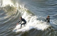 This is where people go to get away from the crowds near the pier. Oceano is known for dolphins, and it is ALWAYS a bit bigger than Pismo (near the pier, to the north). A popular longboard spot with the 40+ crew. If you park at the parking lot to the south of the beach entrance you will see a few of the regulars. If you park in the homes you will see tourists from Bakersfield in the summer beach rentals.