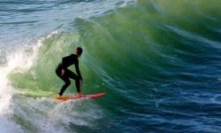 There is free parking in lots on the east side of the railroad tracks by Dairy Queen and the movie theater. Its best to surf during a medium tide (3or 4 ft above sea level). Watch for sideways currents on some days which will tend to drag you towards pier pilings. As with everywhere you surf watch for other people when catching waves, and just try to be respectful to other surfers and you should get along ok.