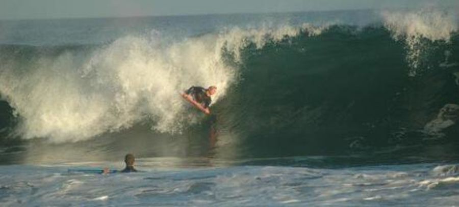 A fun wedgy right-hander breaks into a rip channel along some rocks to the left of this sleepy little Afrikaans holiday village. Also has lefts. A variable peak. It's best in light northwesterly conditions and a 3-5' swell. There is also a nearby beach break, which is comparable to Sandy Bay. It can get excellent.