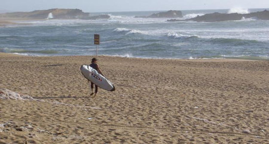2 or 3 min paddling, and 5 minutes walking... the water is cold, you need a wetsuit!