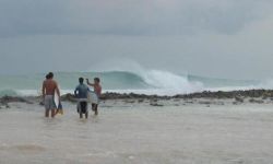 The atmosphere is awesome because if it's on, it's on and the wave is blast. It's in tropicla blue Caribbean water and it is awesome. Kind of sketchy, but worth it. Be hardcore!